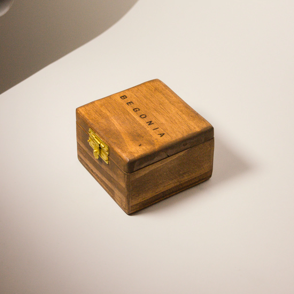 - Embalagem exclusiva de madeira maciça.